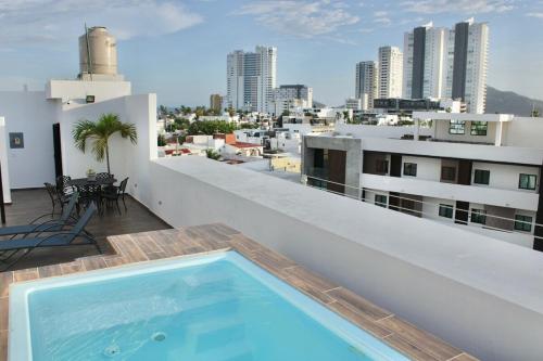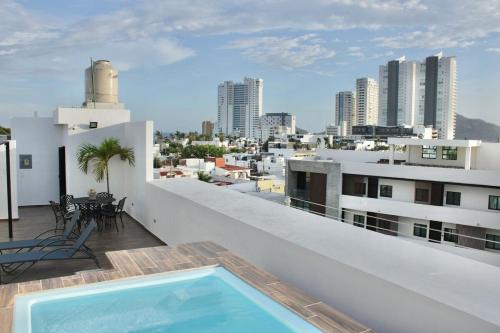 Apartment in the golden zone near the beach rincon colonial 102位于马萨特兰的Zona Dorada,靠近卡马伦海滩(Camaron Beach),配有户外游泳池、免费WiFi和洗衣机。