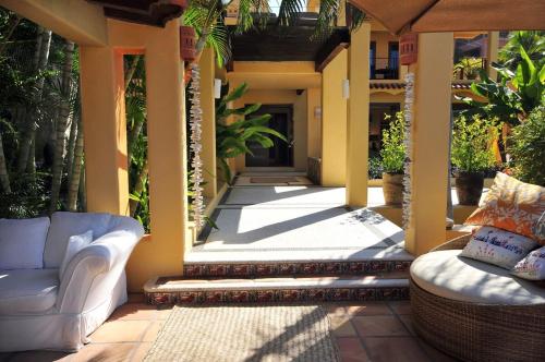 这家别墅提供阳台,享有海景,配有4间卧室、起居室、平板电视、带冰箱和洗碗机的设施齐全的厨房以及5间带淋浴设施的浴室。这家空调别墅还配备休息区、洗衣机以及5间带免费洗浴用品的浴室。