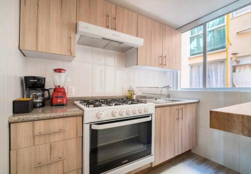 Quiet and cozy with terrace, king-size beds, and parking lot位置很好,位于墨西哥城的改革区,配有露台和礼宾服务,距离独立天使纪念碑有1.7公里,距离流行艺术博物馆有1.8公里。这家公寓配备免费私人停车位、24小时前台和免费WiFi。