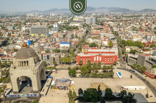 Studio Overlooking the Revolution Monument位于墨西哥城的改革区,靠近记忆和宽容博物馆,拥有健身中心、免费WiFi和洗衣机。这家公寓距离邮政宫有19分钟步行路程,距离独立天使纪念碑有2公里。