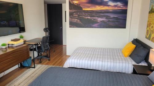 Hermosa Suite doble con baño privado坐落于墨西哥城,距离独立天使纪念碑有7分钟步行路程,配备共用休息室、免费WiFi和24小时前台。这家住宿享有市景,距离美国大使馆有7分钟步行路程,距离查普尔特佩克城堡有2.1公里。