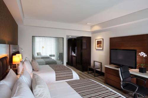 JW Marriot酒店的客房享有现代化装饰,配有空调、平板电视、书桌以及带吹风机、浴袍和洗浴用品的大理石浴室。