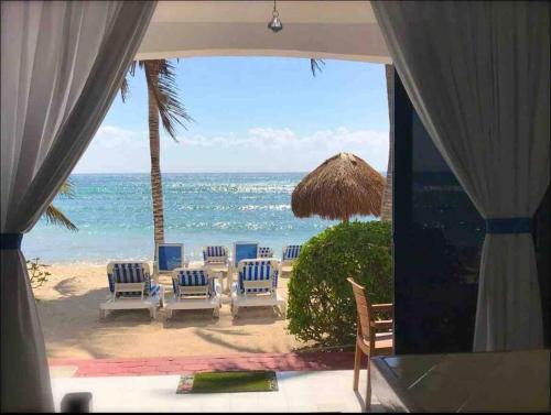 Situated in Akumal, a few steps from Half Moon Bay Beach and 1.5 km from Akumal Beach, Beachfront Akumal Half Moon Bay offers a garden and air conditioning. This beachfront property offers access to a balcony, free private parking and free WiFi. The property is non-smoking and is set 27 km from Tulum Archeological Site.