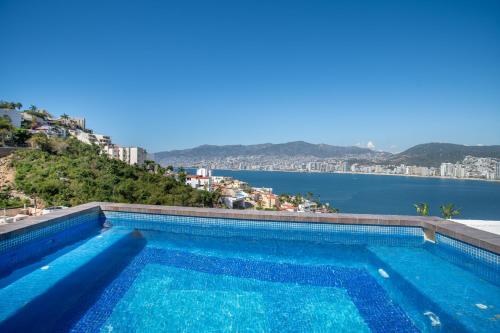 LUXO Casa en Acapulco Zona Brisas Guitarrón con vistas espectaculares y 2 albercas坐落于阿卡普尔科的马尔克斯港,距离秘密海滩(El Secreto)仅有7分钟步行路程,配有户外游泳池、花园、共用休息室和酒吧。这家别墅配备免费私人停车位。客人可以在周边地区体验滑雪和骑行等活动。