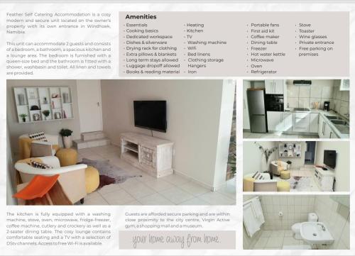 Feather Self Catering Accommodation位于温特和克,享有花园景,提供免费WiFi,距离温德胡克国家植物园仅1.9公里,距离仓库剧院有1.9公里。这家住宿距离老堡垒博物馆有19分钟步行路程,提供花园和免费私人停车位。