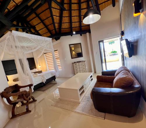 Lapa Lange Game Lodge山林小屋距离喀拉哈里沙漠(Kalahari Desert)仅有4公里,提供狩猎活动,还可在水塘遇见野生动物。山林小屋设有一个室外游泳池。花园郁郁葱葱,修剪整齐。