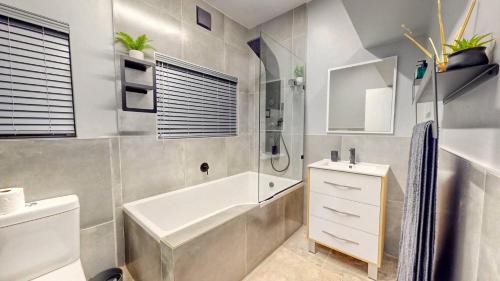 这家公寓提供庭院,享有海景,配有3间卧室、起居室、平板电视、带冰箱和烤箱的设施齐全的厨房以及2间带淋浴设施的浴室。2间浴室提供吹风机。