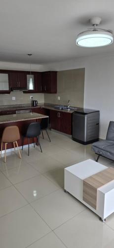 这家公寓配有2间卧室、起居室、带冰箱和电热水壶的设施齐全的厨房以及2间带淋浴设施和吹风机的浴室。这家公寓也为客人提供休息区和2间浴室。