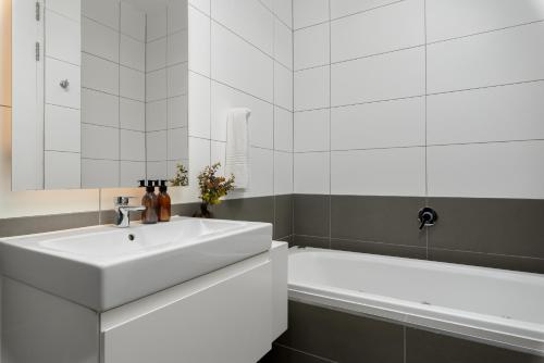 这家公寓配备2间卧室、带冰箱和洗碗机的厨房以及2间带淋浴设施、吹风机和洗衣机的浴室。这家公寓也为客人提供2间浴室。