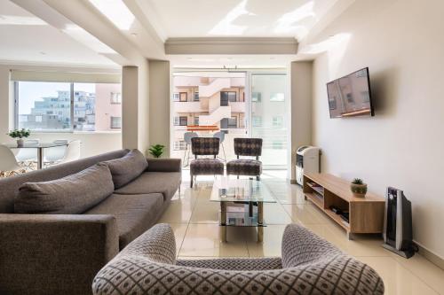 两卧室公寓提供平板卫星电视、保险箱、休息区以及带淋浴和吹风机的私人浴室。部分公寓享有局部海景。