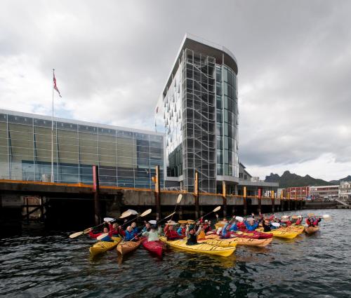 Thon Lofoten酒店的客人可以免费使用临近的健身中心。罗弗敦文化中心(Lofoten Culture Centre)就位于酒店旁。