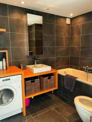 这家空调公寓配有2间卧室、起居室、带冰箱和咖啡机的设施齐全的厨房以及2间带淋浴设施和吹风机的浴室。这家公寓还配备带卫星频道的平板电视以及2间带浴缸的浴室。
