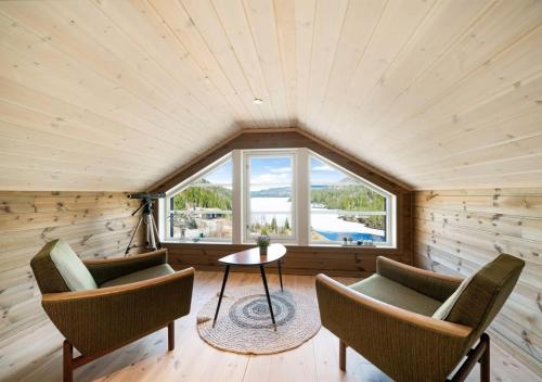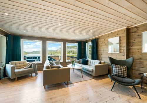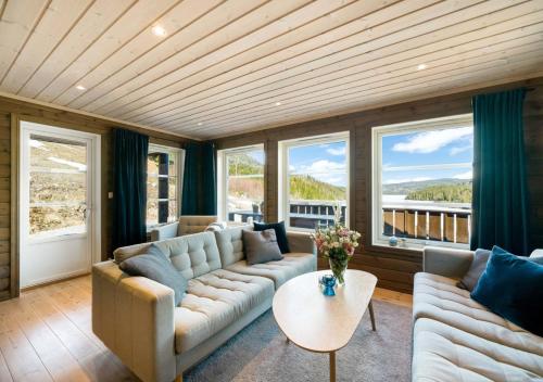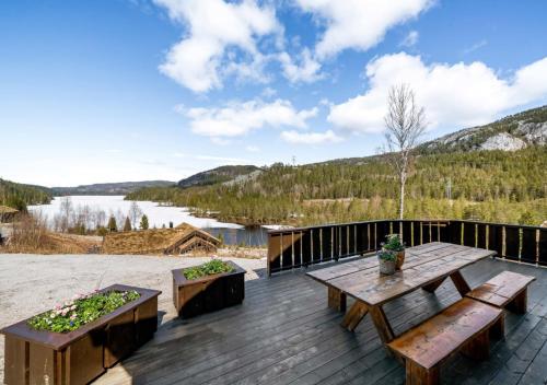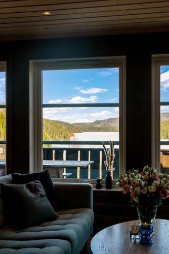 Eribo cabin with panoramic lake & mountain view位于泰勒马克郡的Lona,配有庭院,享有山景。这家住宿距离夏日乐园有13公里,提供花园和免费私人停车位。