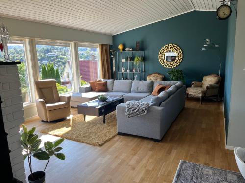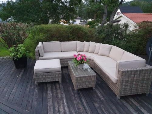 Holiday home with seaview in Flekkefjord位于弗莱克菲尤尔,配备带免费WiFi的花园景客房,配有露台。这家自助式度假屋拥有花园和免费私人停车位。