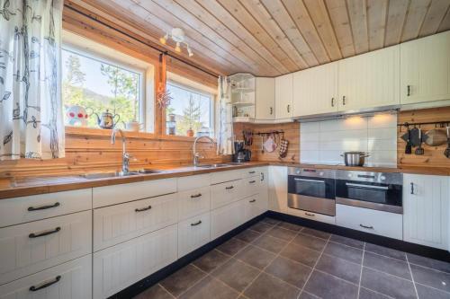 Lakehouse - 14p - With Sauna & By the Water位于弗罗达尔,距离Eidsborg Stave Church仅有47公里,享有山景,提供免费WiFi和免费私人停车位。入住这家度假屋的客人可以使用阳台。