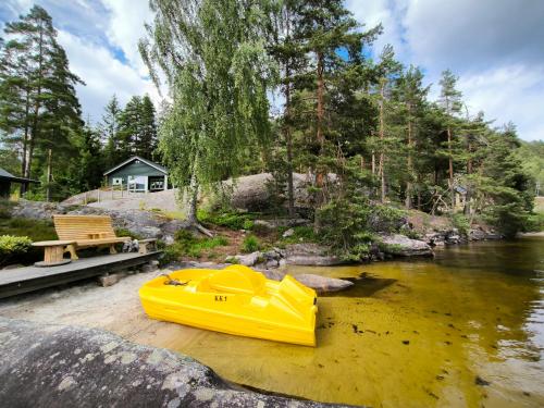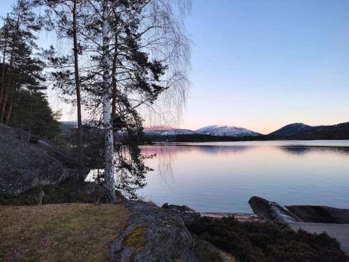 Hytte ved Vråvatnet i Vrådal享有山景,提供私家海滩和庭院,距离Eidsborg Stave Church约有45公里。这家海滨住宿的客人可以使用露台、免费私人停车位和免费WiFi。