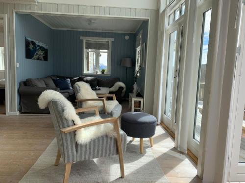 这家度假屋提供露台,享有山景,配有3间卧室、起居室、平板电视、带冰箱和洗碗机的设施齐全的厨房以及1间带淋浴设施的浴室。这家度假屋也提供休息区和1间浴室。