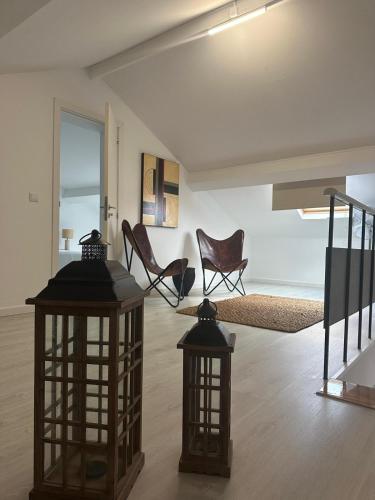 这家空调公寓配有2间卧室、起居室、带冰箱和咖啡机的设施齐全的厨房以及2间带浴缸或淋浴设施和吹风机的浴室。这家公寓也提供休息区和2间浴室。