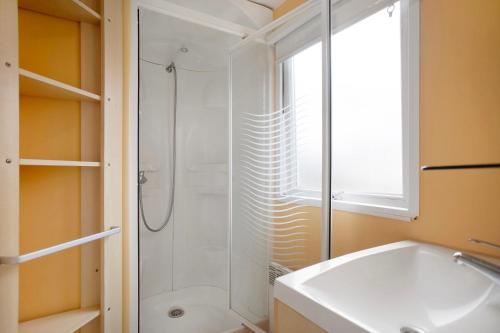这家小木屋配有2间卧室、带有线频道的电视、带冰箱和洗碗机的设施齐全的厨房以及1间带淋浴设施的浴室。这家小木屋也提供1间浴室。