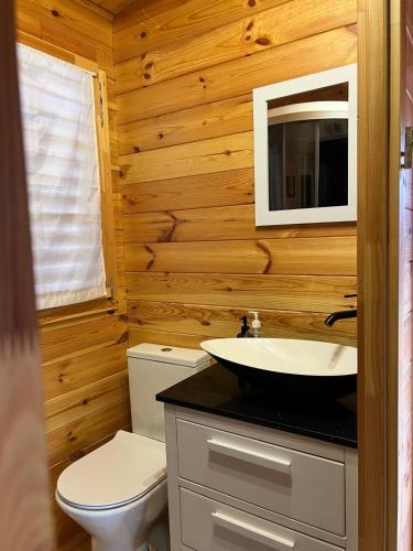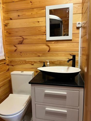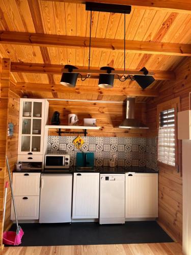 这家空调小木屋配有1间独立卧室、设施齐全的厨房以及1间浴室。这家小木屋也配有1间浴室。