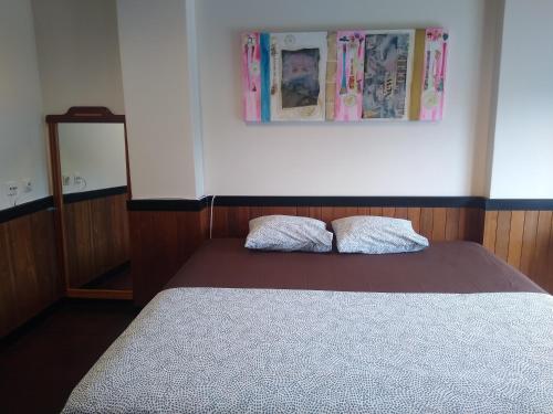 这家旅馆的客房均配备共用浴室和床上用品。