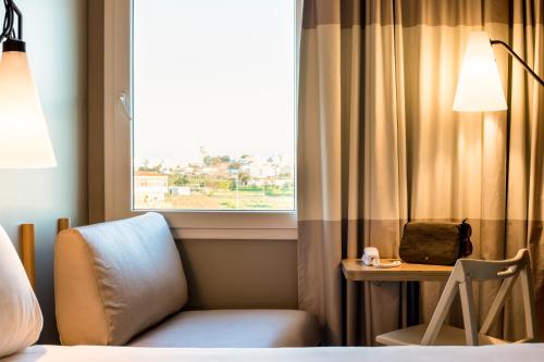 Hotel Ibis Faro酒店提供以中性色调装饰的陈设简单的客房。所有空调客房均设有电视和私人浴室。