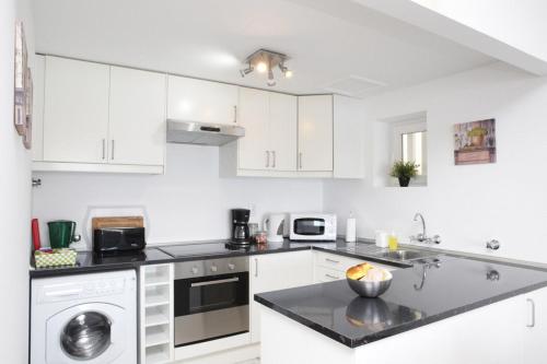 这家空调公寓配有2间卧室、起居室、带冰箱和咖啡机的设施齐全的厨房以及1间带浴缸和吹风机的浴室。这家公寓也配有1间浴室。
