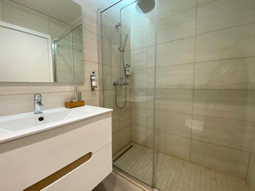 这家空调公寓配有1间卧室、起居室、带冰箱和咖啡机的设施齐全的厨房以及1间带浴缸或淋浴设施和免费洗浴用品的浴室。这家公寓还提供休息区、洗衣机以及1间带吹风机的浴室。