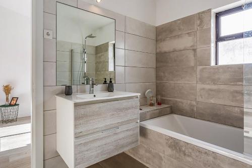 这家空调公寓配有2间卧室、起居室、带冰箱和咖啡机的设施齐全的厨房以及2间带坐浴盆和淋浴设施的浴室。2间浴室配有浴缸,也提供吹风机,提供毛巾和床上用品。