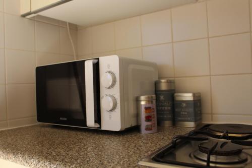 这家公寓配有1间卧室、起居室、带冰箱和咖啡机的设施齐全的厨房以及1间带坐浴盆和吹风机的浴室。这家公寓还提供带有线频道的平板电视以及1间带浴缸的浴室。