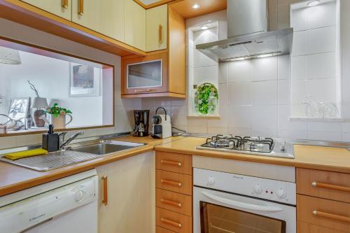 这家空调公寓配有1间卧室、起居室、带冰箱和咖啡机的设施齐全的小厨房以及1间带坐浴盆和吹风机的浴室。这家公寓还提供带有线频道的平板电视以及1间带浴缸的浴室。