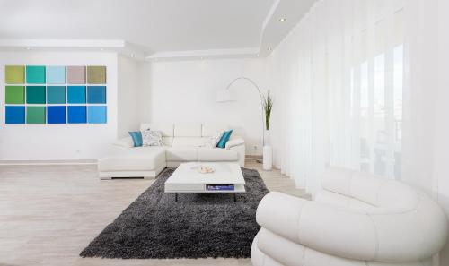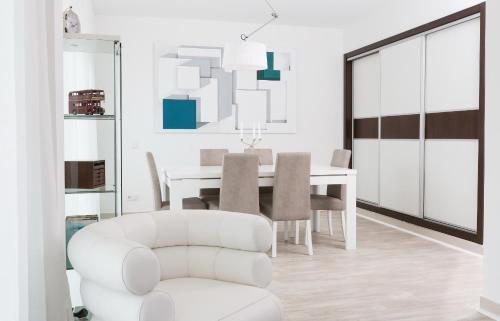 设施齐全的厨房配有准备餐点所需的所有电器。公寓提供带卫星频道的平板智能电视以及蓝牙扬声器。卧室提供1张特大号床、空调和平板卫星电视。