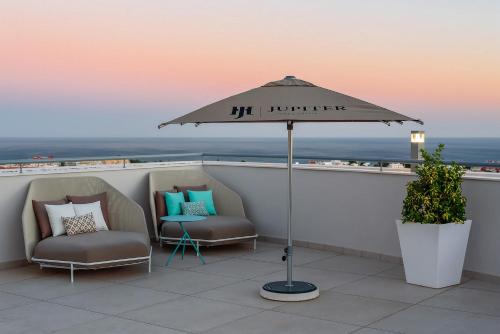 The renovated 5-star Jupiter Albufeira Hotel - Family & Fun - All Inclusive is located in the tranquil Montechoro area within a 10-minute drive from Oura Beach and Albufeira’s centre. It features a water park, several outdoor pools, a Spa and a great all inclusive programme.