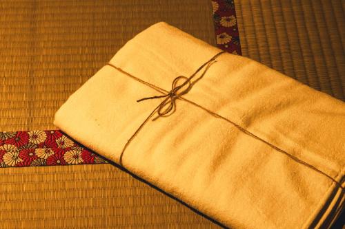 这家旅馆的每间客房都配备共用浴室和床上用品。