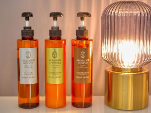 部分房间提供带坐浴盆、免费洗浴用品、吹风机和拖鞋的私人浴室。