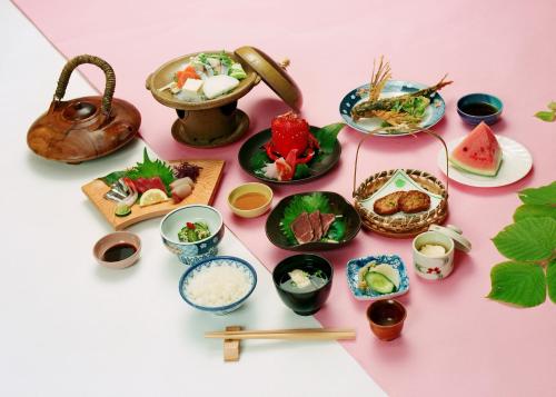日式客房铺有带传统蒲团寝具的榻榻米(草编)地板。西式客房设有地毯和床。所有客房均配有电视、冰箱和连接浴室。
