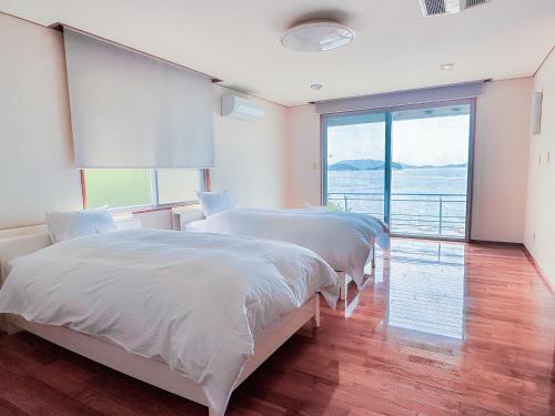 这家度假屋配有2间卧室、1间浴室、床上用品、毛巾、平板电视、用餐区、设施齐全的厨房以及海景露台。这家空调度假屋还配备洗衣机以及1间带坐浴盆、淋浴设施和浴缸的浴室。