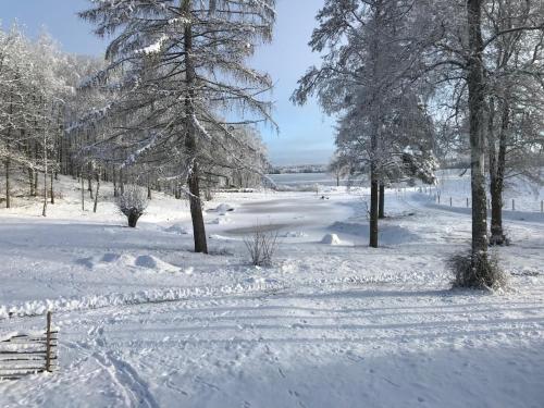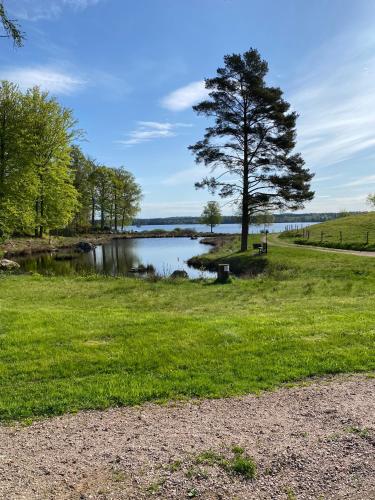 Joarsbo, Stuga 2, Gårdsstugan位于Kalv,提供带免费WiFi的湖景客房,配备花园、私家海滩和露台。内部提供私人停车位。
