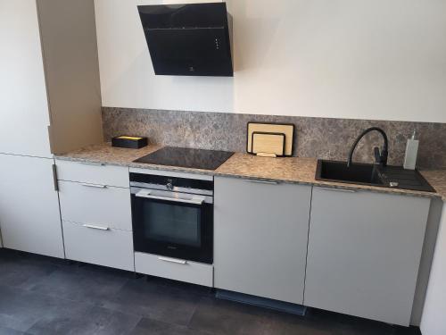这家公寓配有1间卧室、起居室、带冰箱和咖啡机的设施齐全的厨房以及1间带淋浴设施和吹风机的浴室。这家公寓也拥有1间浴室。
