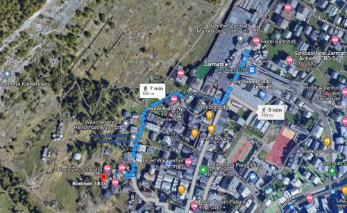 Bodmen 3 Apartments von Privat in Zermatt坐落于采尔马特中心,配有免费自行车、花园和露台,距离采尔马特火车站有不到6分钟步行路程,距离马特宏峰博物馆有300米。住宿提供免费WiFi。