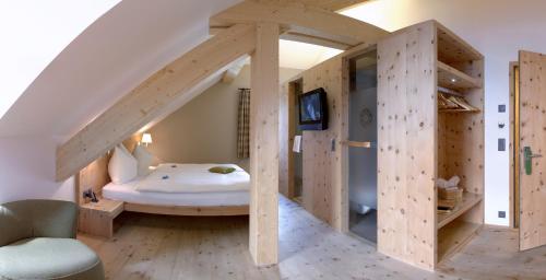 Romantik Hotel酒店的Panorama Restaurant餐厅在典雅的用餐室或露台上供应区域和地中海美食。Scatla自助餐厅还提供小吃和饮料。