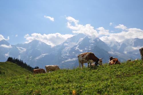 Chalet Bim Chilchli坐落于米伦,配备露台和免费WiFi,享有山景,距离雪朗峰有6.8公里,Mürren - Schilthorn有5.9公里。