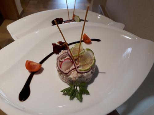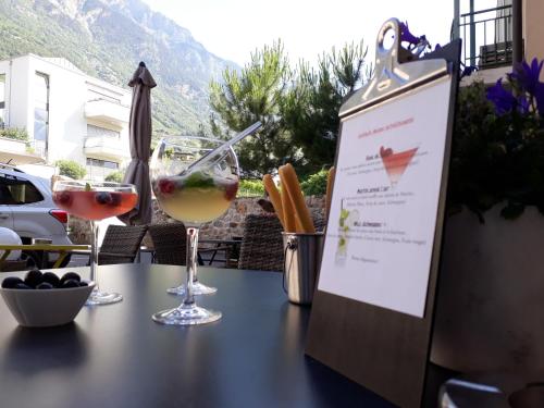 Hotel de Fully酒店的客人可在优雅的餐厅、优雅的小酒馆和咖啡厅用餐夏天,客人可以在露台上品尝当地的葡萄酒。