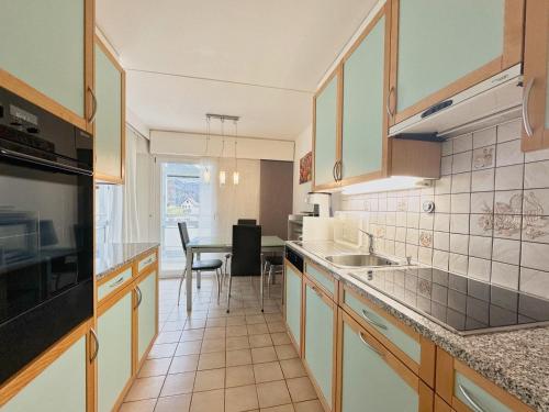 The apartment with a balcony and mountain views features 1 bedroom, a living room, a flat-screen TV, an equipped kitchen with a dishwasher and an oven, and 1 bathroom with a shower. Guests can enjoy a meal on an outdoor dining area while overlooking the garden views.