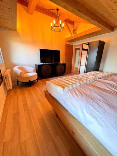 这家别墅提供露台,享有山景,拥有5间卧室、起居室、平板电视、带冰箱和洗碗机的设施齐全的厨房以及2间带淋浴设施的浴室。2间浴室配有热水浴池,也配有吹风机,提供毛巾和床上用品。