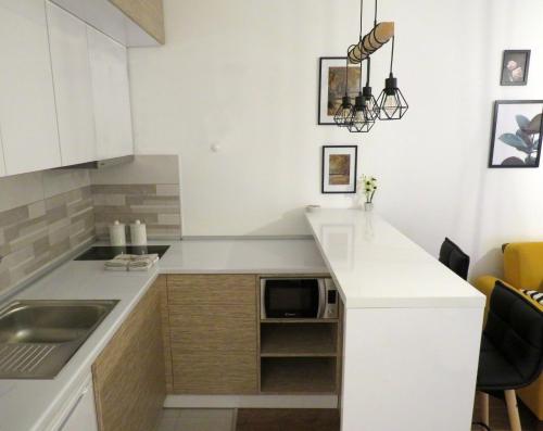 这家空调公寓配有1间卧室、起居室、带冰箱和电热水壶的设施齐全的厨房以及1间带淋浴设施和吹风机的浴室。这家公寓也为客人提供休息区和1间浴室。