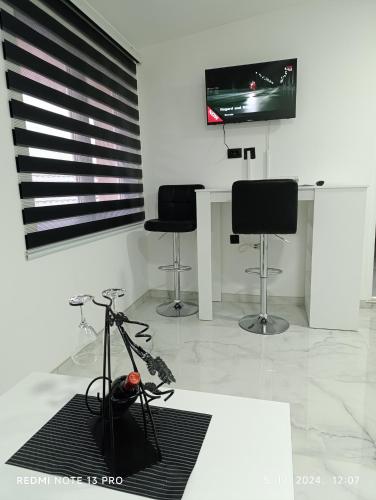 这家空调公寓配有1间卧室、起居室、带冰箱和咖啡机的设施齐全的厨房以及1间带淋浴设施和吹风机的浴室。这家公寓也拥有休息区和1间浴室。