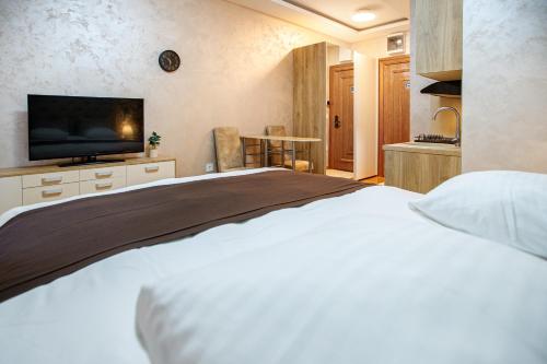 部分房间提供卫星频道平板电视、带冰箱的设施齐全的厨房,以及带淋浴设施和免费洗浴用品的私人浴室。