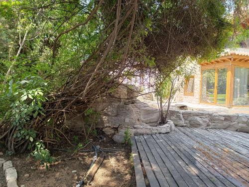 One bedroom semi-detached stone-built villa with beautiful gardens and pool