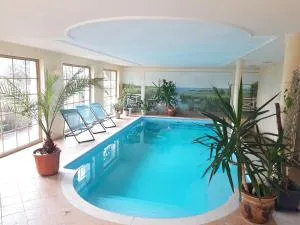 Ein Bett im Kornfeld - Haus Weitblick - mit Innenpool位于Schönfeld,提供带阳台和免费WiFi的自助式住宿。这家自助式度假屋配有私人泳池、花园和免费私人停车位。 这家度假屋配有1间卧室、1间浴室、床上用品、毛巾、带卫星频道的平板电视、用餐区、设施齐全的小厨房以及花园景露台。1间浴室提供淋浴设施、免费洗浴用品和吹风机。 前台工作人员会讲德语、英语和西班牙语,可随时为客人提供帮助。 这家度假屋的客人可在住宿内部玩飞镖,或在周边地区体验骑行。 罗斯托克拉格机场距离住宿有86公里。 更多